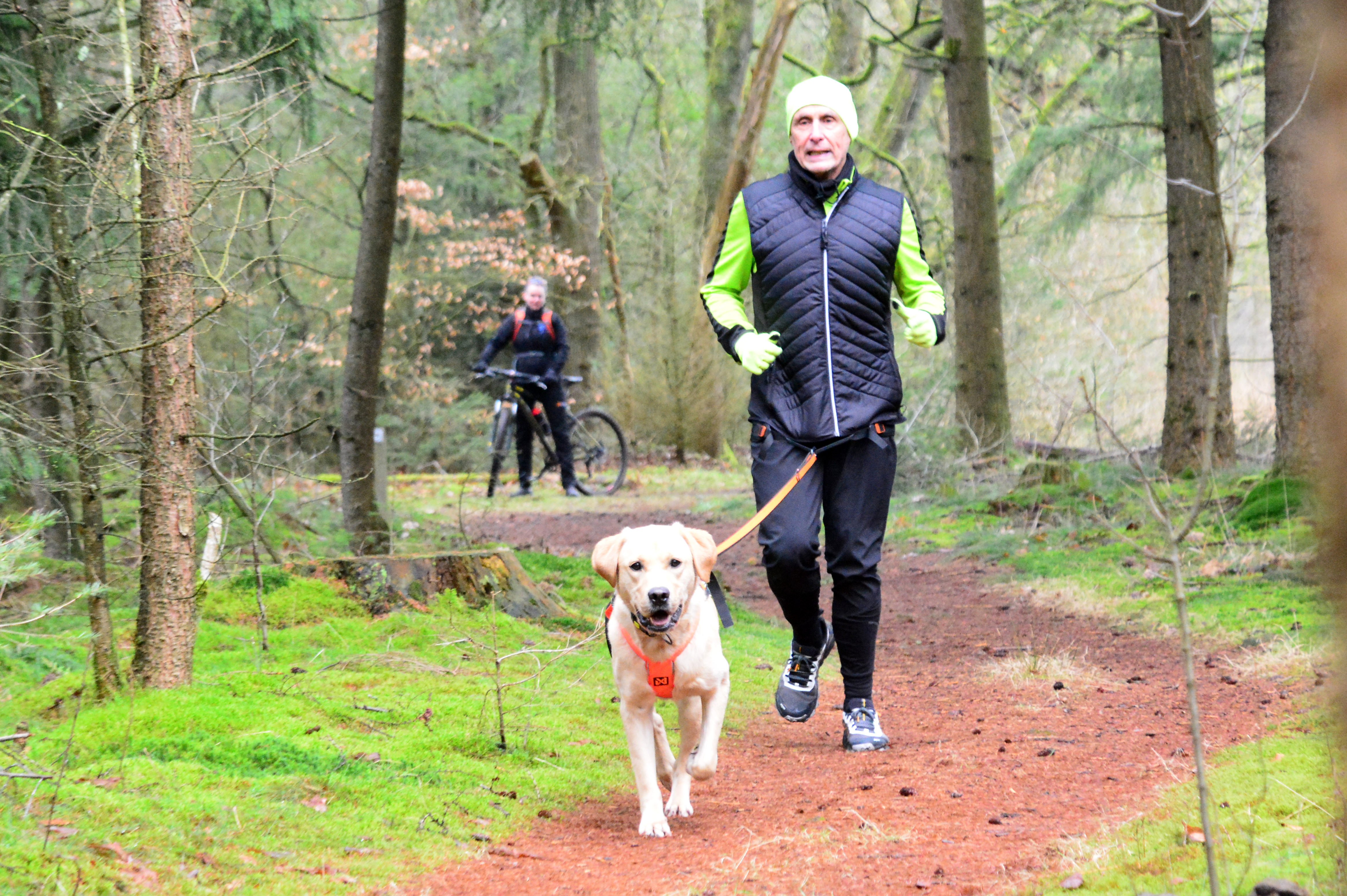 Canicross is hardlopen met je hond op onverharde ondergrond, waarbij de hond in harnas vóór je loopt en jullie samenwerken via een elastische lijn.